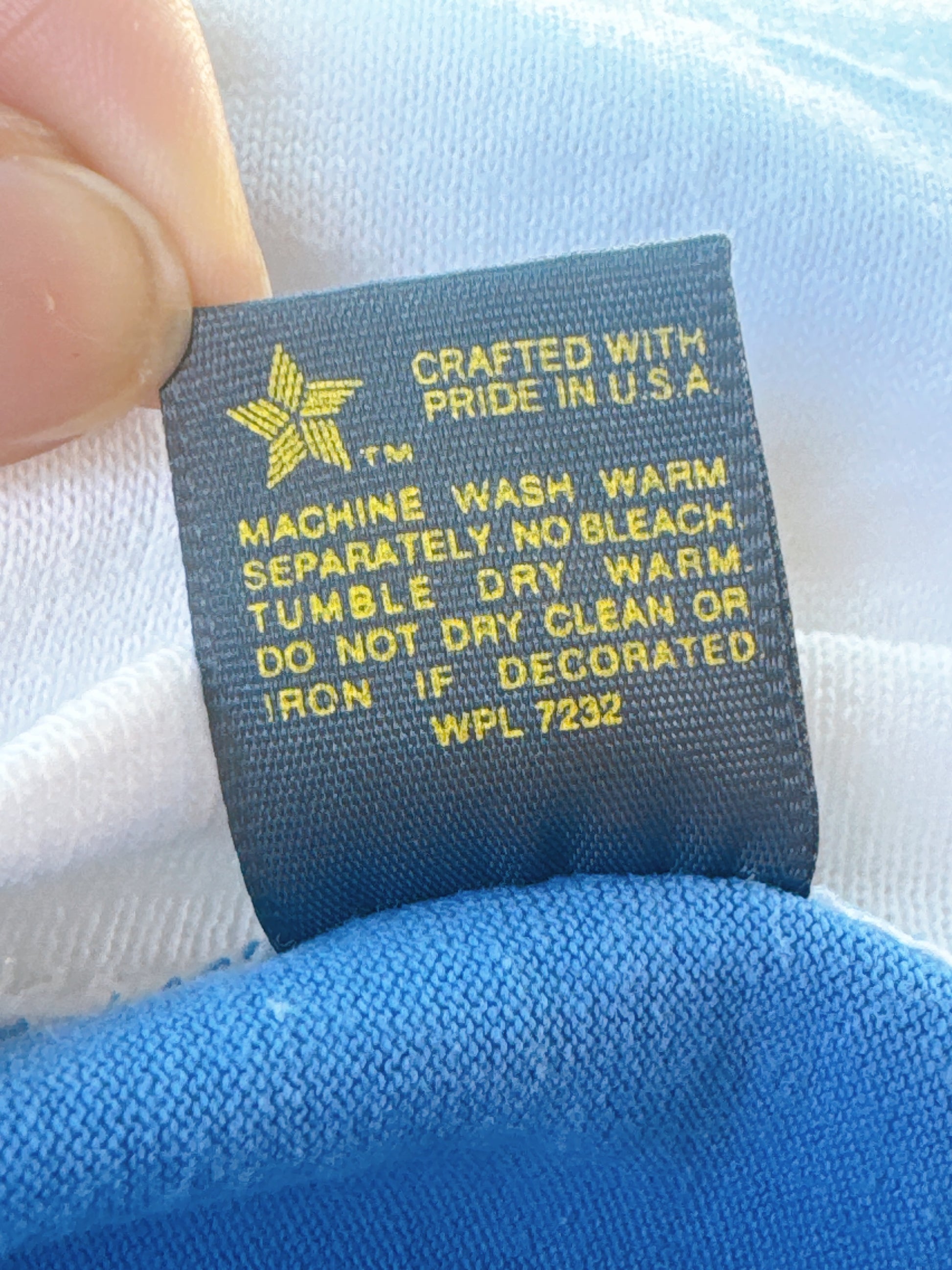 An original 1970s “California” Sunset Novelty Raglan White & Blue T-Shirt